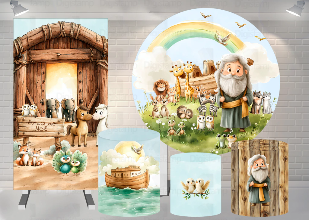 Kit Painel + Trio de Cilindros + Painel Lateral Sublimados Arca de Noé SKIT214