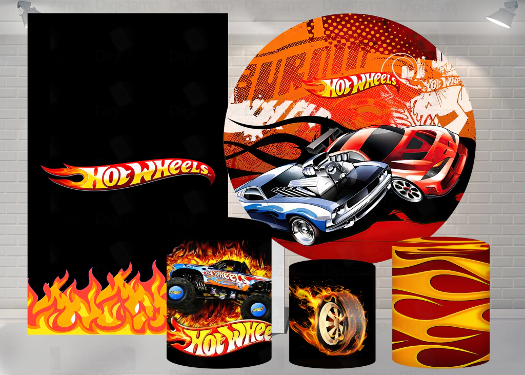 Kit Painel + Trio de Cilindros + Painel Lateral Sublimados Hot Wheels SKIT067