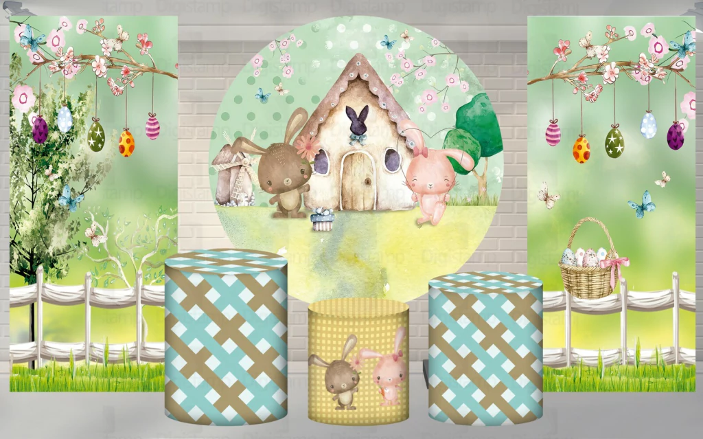KIT Capa para Painel de Festa Redondo Veste-Fácil + Capas de Cilindros em Tecido Sublimado + Painel Lateral Veste-Facil