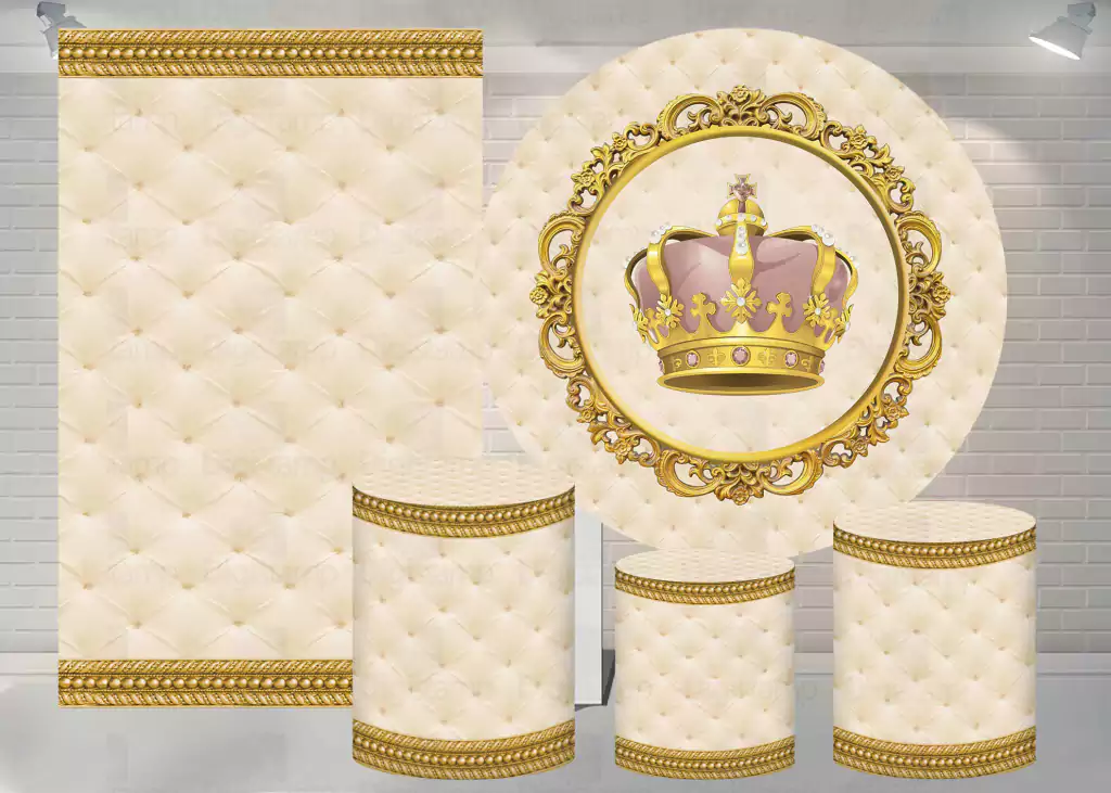 Kit Painel + Trio de Cilindros + Painel Lateral Sublimados Realeza Bege SKIT176