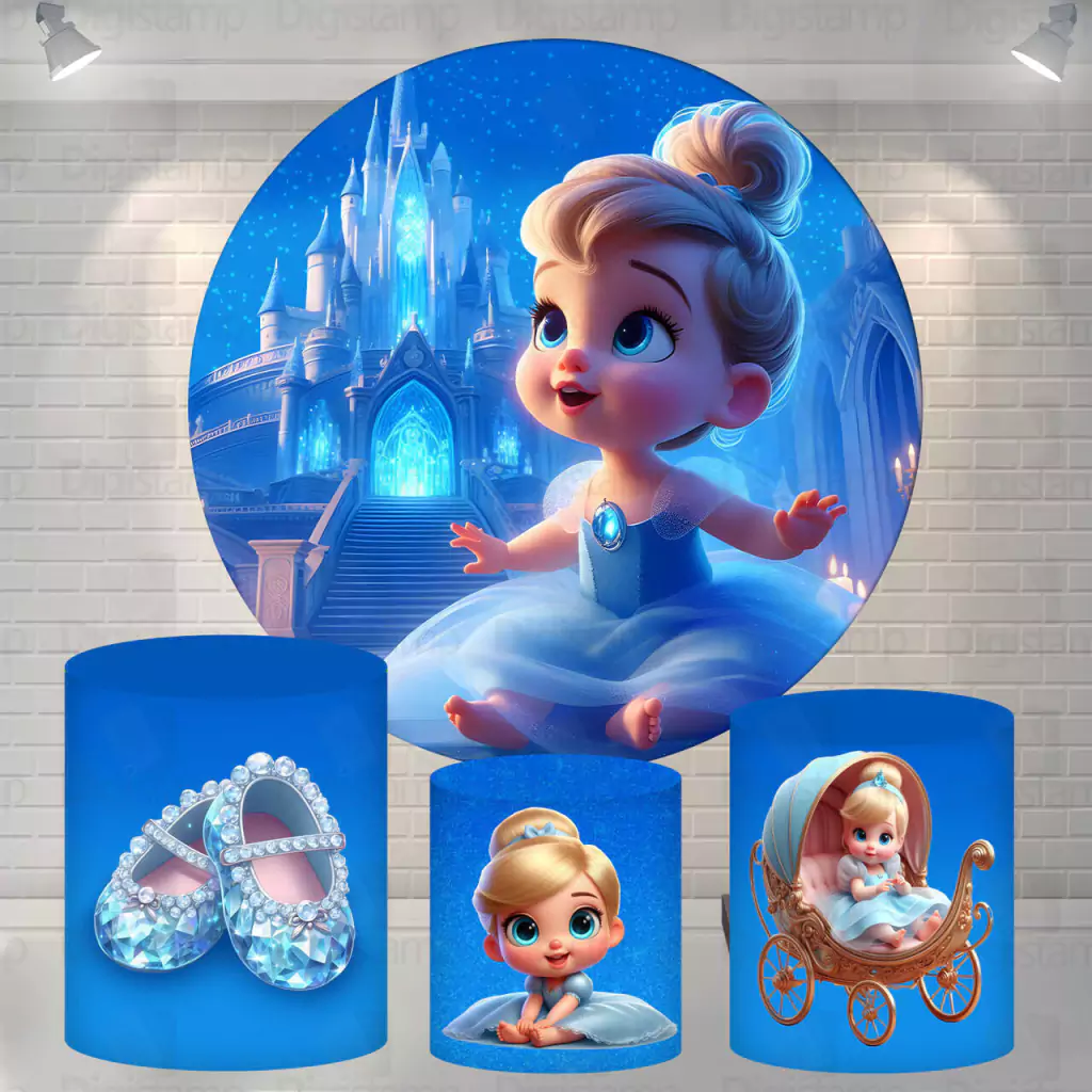 Kit Painel + Trio de Cilindros Sublimados Cinderella Cute KIT1136