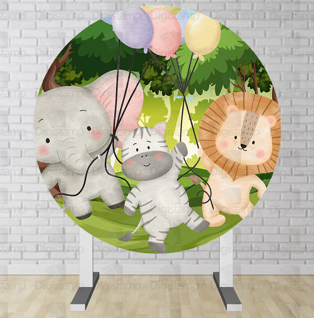 Painel Redondo Sublimado Interativo Balões Safari PNR1290
